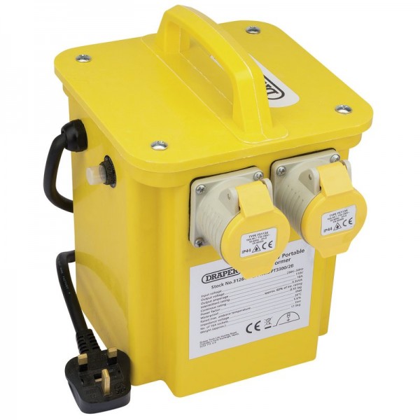 Built with a tough corrosion-resistant case and fitted with thermal overload protection and two 16A sockets with full copper windings on 31262 and 31263, these site transformers are ideal for use with all 110V power tools and halogen lighting on building sites. Fitted with 2M (approx.) cable and approved plug. Carton packed.