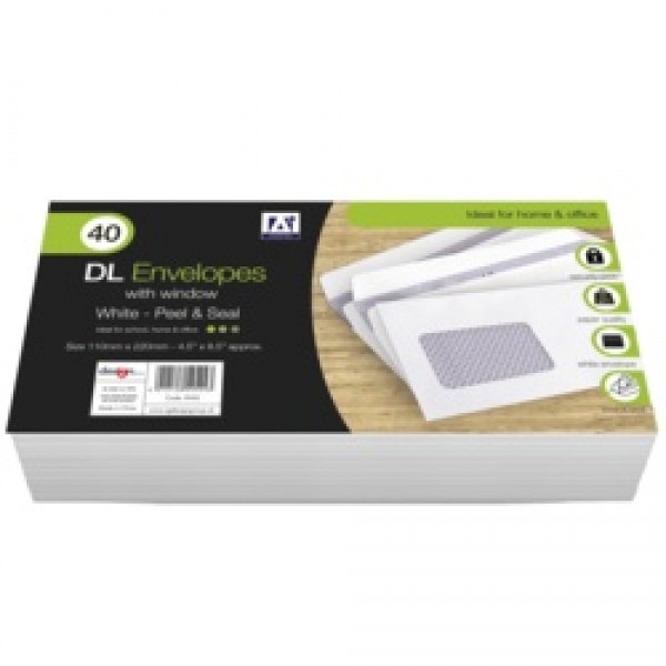 DL Peel & Seal Envelopes With Window - Pack 40 White