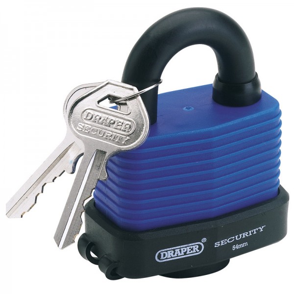 Laminated Steel Padlock and 2 Keys with Hardened Steel Shackle and Bumper, 54mm