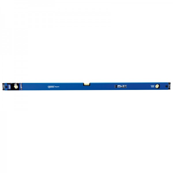 Expert Quality, Aluminium box section levels with side view feature, comprising three highly visible solid acrylic and UV resistant vials, one magnified horizontal vial and two vertical vials, one with side view vial feature, milled base up to 1200mm. The 1.8M is fitted with one horizontal magnified vial and has an unmilled base. All the levels are electrostatically epoxy powder coated and baked for maximum protection. Fitted with shock absorbing end caps. The base has a finely milled surface (1.8M unground). Accuracy 0.5mm per 1M = 0.029° (1800mm 1mm per 1M = 0.057°) in standard position.