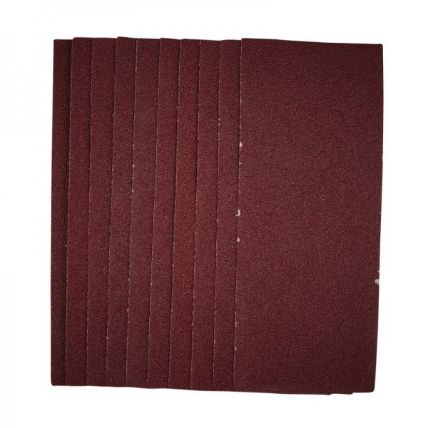 This pack of 1/3 sanding sheets (93 x 230mm) are made from premium quality aluminium oxide that is resin bonded to provide improved grain adhesion, anti-static qualities and long-lasting performance. The sheets are pre-cut to fit 1/3 sanders with clamping function (93 x 190mm). The heavy-duty E-Weight backing paper makes the sanding sheet more durable – able to withstand the toughest jobs. Ideal for sanding and finishing wood, metal, aluminium alloy, painted surfaces, plastic and fillers. Compatible with most 1/3 sanders including Stock No. 57839.