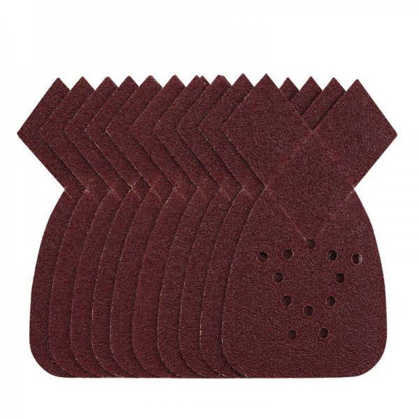 This pack of 140mm detail sanding sheets have extra perforated tear-off diamonds for increased detail sanding. Made from premium quality aluminium oxide that is resin bonded to provide improved grain adhesion, anti-static qualities and long-lasting performance. The heavy-duty E-Weight backing paper makes the sanding sheet more durable – able to withstand the toughest jobs. The hook and loop backing offers decent adhesion to facilitate the fast changing of sanding sheets. The 12 pre-punched 6mm holes improve dust extraction. Ideal for sanding and finishing wood, metal, aluminium alloy, painted surfaces, plastic and fillers. Compatible with most detail sanders with 140mm hook and loop backing pads.