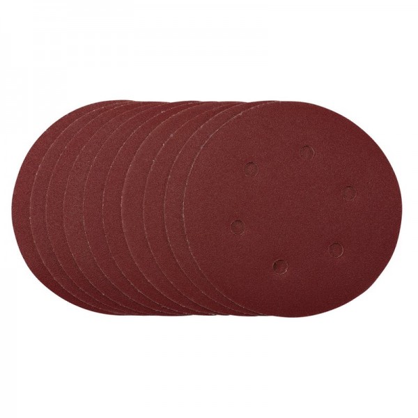 These premium quality aluminium oxide 150mm sanding discs are resin bonded to provide improved grain adhesion, anti-static qualities and long-lasting high performance. The heavy-duty E-Weight backing paper makes the sanding disc more durable – able to withstand the toughest jobs. The hook and loop backing offers decent adhesion to facilitate the fast changing of sanding discs. The six pre-punched 8mm holes improve the dust extraction during sanding. Ideal for sanding and finishing wood, metal, aluminium alloy, painted surfaces, plastic and fillers. Compatible with all 150mm random orbital sanders with hook and loop backing pads.