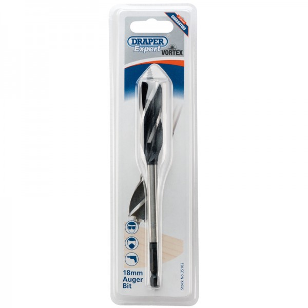 Expert Quality, revolutionary auger bits, manufactured with four razor sharp carbon steel cutting edges. Their unique design helps the bits pull themselves through the material when drilling, making tasks effortless whilst delivering perfect holes every time. All sizes have a strong 6.35mm hex shank. Display packed.