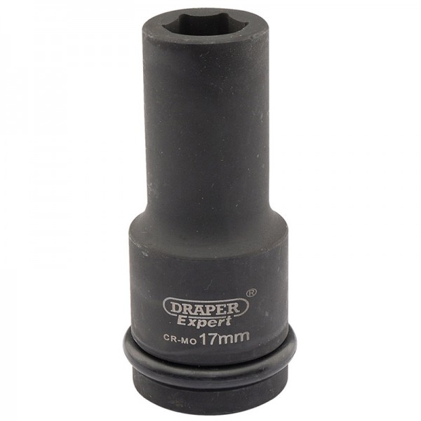 Expert Quality, 6 point sockets forged from chrome molybdenum hardened, tempered and chemically blacked for corrosion protection. Supplied with pin and ring. These sockets are for use with air, electric or manual impact wrenches. Packed in polythene bag with barcode.