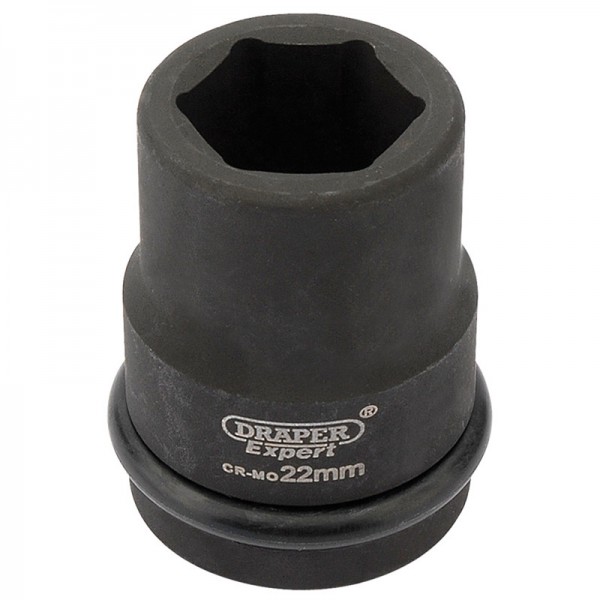 Expert Quality, 6 point sockets forged from chrome molybdenum hardened, tempered and chemically blacked for corrosion protection. Supplied with pin and ring. These sockets are for use with air, electric or manual impact wrenches. Packed in polythene bag with barcode.