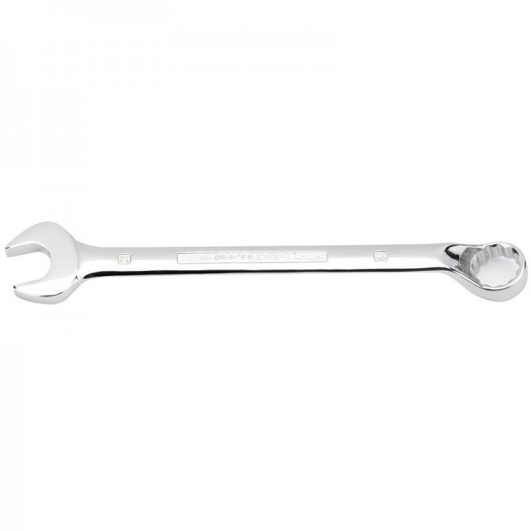 Expert Quality, with Draper Expert HI-TORQ® deep offset ring end cranked at 15°. Open end set at 15°. Long pattern forged from chrome vanadium steel, hardened, tempered, chrome plated and fully polished throughout.