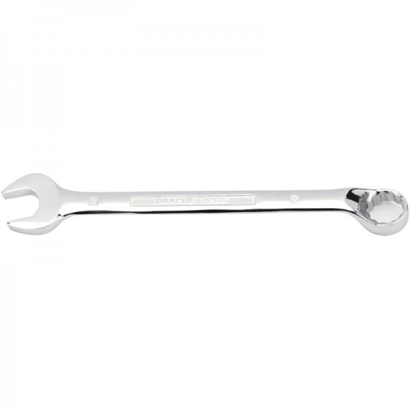 Expert Quality, with Draper Expert HI-TORQ® deep offset ring end cranked at 15°. Open end set at 15°. Long pattern forged from chrome vanadium steel, hardened, tempered, chrome plated and fully polished throughout.