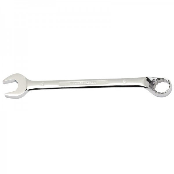 Expert Quality, with Draper Expert HI-TORQ® deep offset ring end cranked at 15°. Open end set at 15°. Long pattern forged from chrome vanadium steel, hardened, tempered, chrome plated and fully polished throughout.