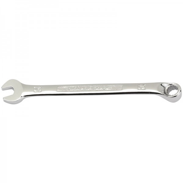 Expert Quality, with Draper Expert HI-TORQ® deep offset ring end cranked at 15°. Open end set at 15°. Long pattern forged from chrome vanadium steel, hardened, tempered, chrome plated and fully polished throughout.