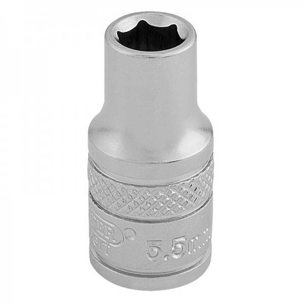 Expert Quality, 6 point socket manufactured from chrome vanadium steel hardened and tempered with a micro satin finish. Each socket has a knurled ring for extra grip.
