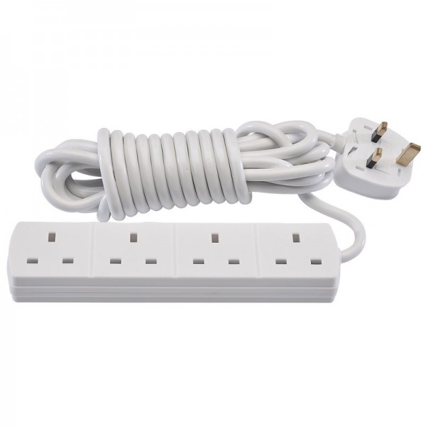 4-way extension socket with a 5-metre cable ideal for use with all household appliances including computers and peripherals up to and including 13A. Fitted with 13A fused UK 3 pin plug and conforms to latest BS regulations.