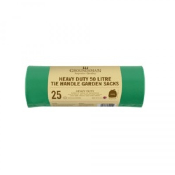 Heavy Duty Tie Handle Garden Bags 50L - Roll 25